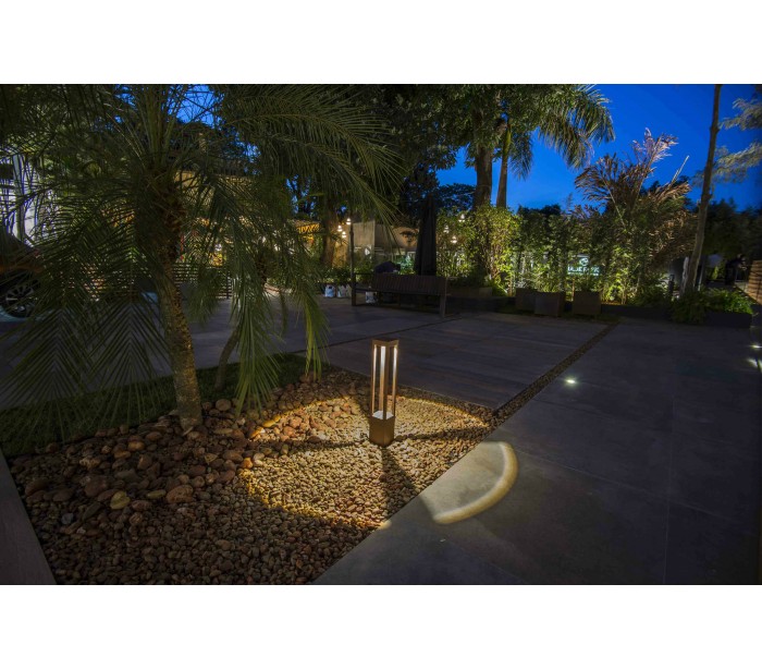 Agra havelampe i et moderne design, fremstillet i rustlakeret aluminium og skærm i klart glas. Lampen måler 65 cm i højden og anvender 1 x COB LED lyskilde på 10W (Inkl.). Lampen bør monteres på fast undergrund eller betonstøbning/flise.