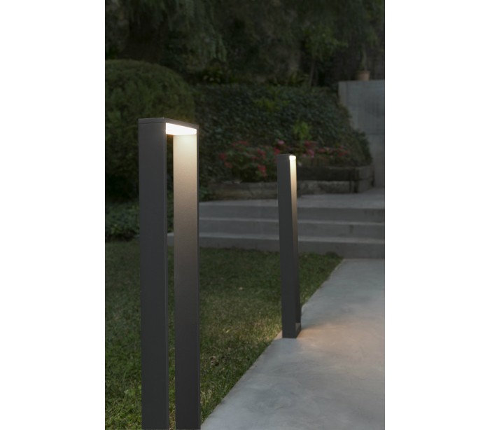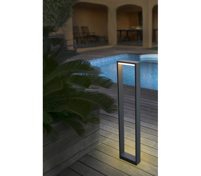 Alp havelampe i et moderne design, fremstillet i mørkegrå lakeret aluminium og skærm i opal polycarbonat. Lampen måler 80 cm i højden og anvender 1 x SMD LED lyskilde på 8W (Inkl.). Lampen bør monteres på fast undergrund eller betonstøbning/flise.