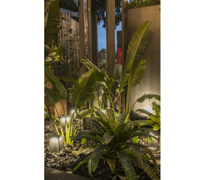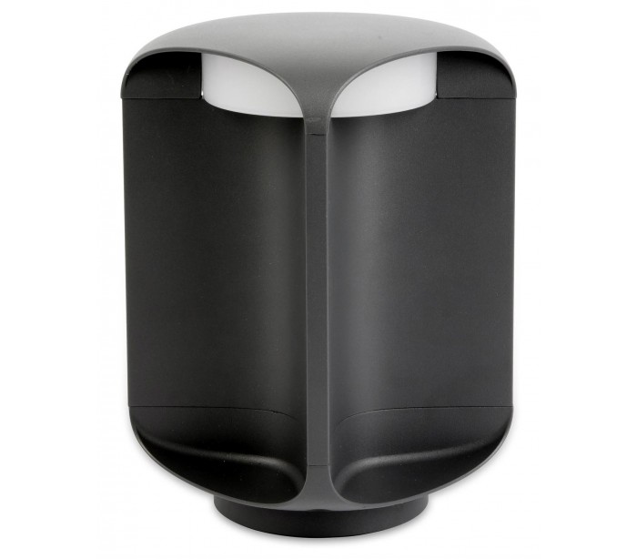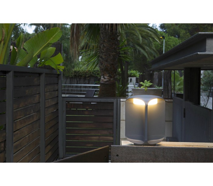 BU-OH havelampe i et moderne design, fremstillet i mørkegrå lakeret aluminium og skærm i hvid polycarbonat. Lampen måler 26,5 cm i højden og anvender 1 x SMD LED lyskilde på 12W (Inkl.). Lampen bør monteres på fast undergrund eller betonstøbning/flise.