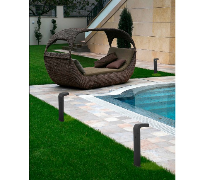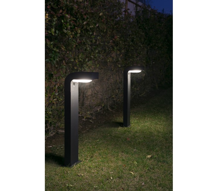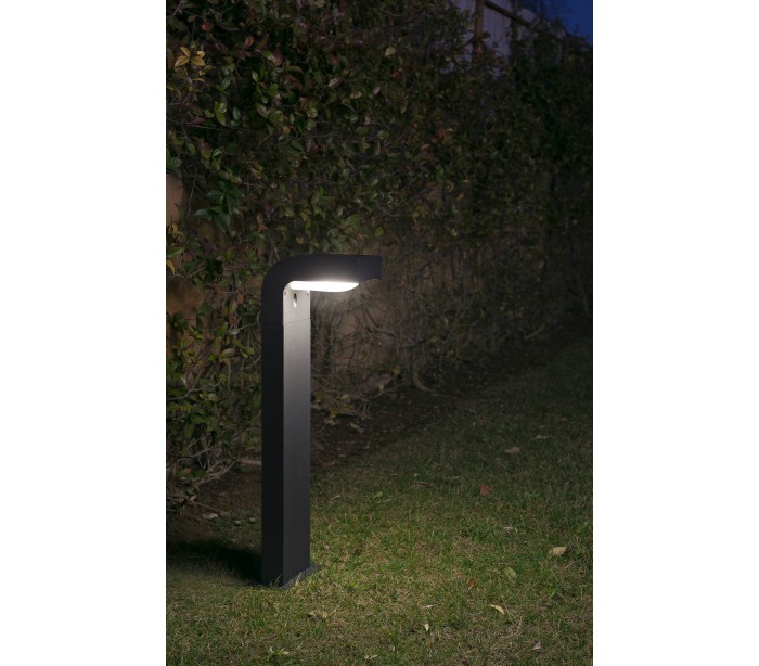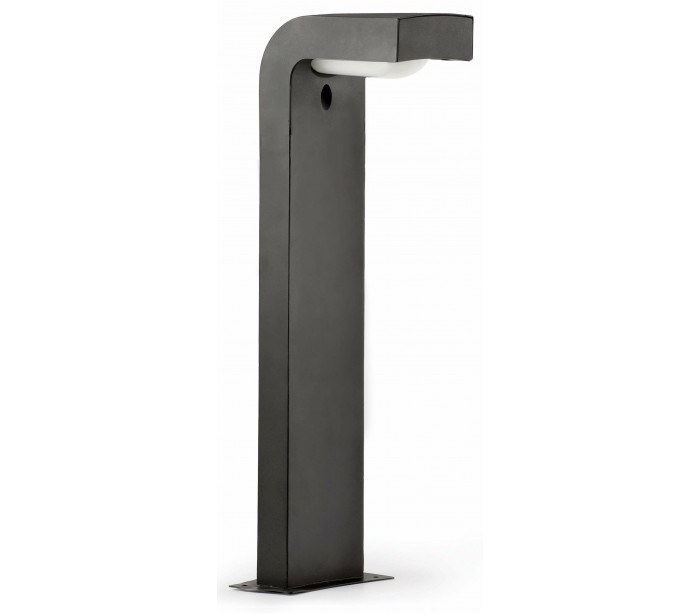 Klamp havelampe i et moderne design, fremstillet i mørkegrå lakeret aluminium og skærm i hvid polycarbonat. Lampen måler 66 cm i højden og anvender 1 x E27 lyskilde på max. 15W (Ekskl.). Lampen bør monteres på fast undergrund eller betonstøbning/flise.