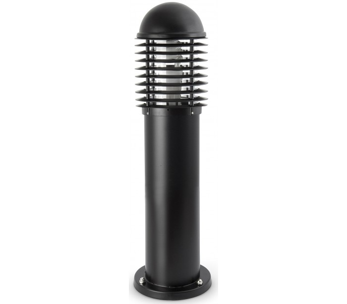 Verno havelampe i et moderne design, fremstillet i sortlakeret aluminium og skærm i klart polycarbonat. Lampen måler 65 cm i højden og anvender 1 x E27 lyskilde på 60W (Ekskl.). Lampen bør monteres på fast undergrund eller betonstøbning/flise.