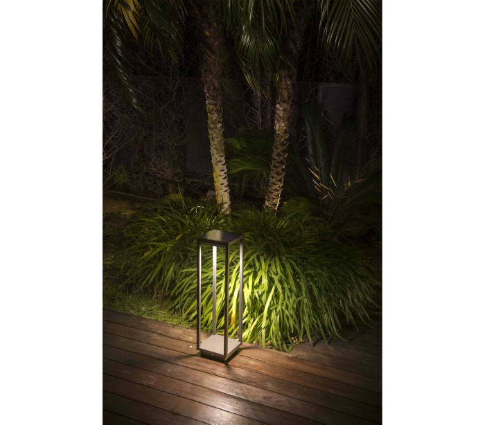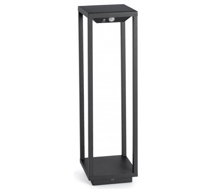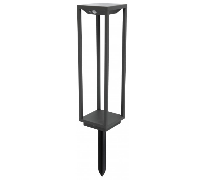 Saura havelampe i et moderne design, fremstillet i mørkegrå lakeret aluminium. Lampen måler 50 cm i højden og anvender 1 x Solar LED lyskilde på 2,2W (Inkl.). Lampen er med sensor, der regulerer belysningen ved bevægelse. Der medfølger jordspyd samt monteringsæt til fast undergrund eller betonstøbning/flise.