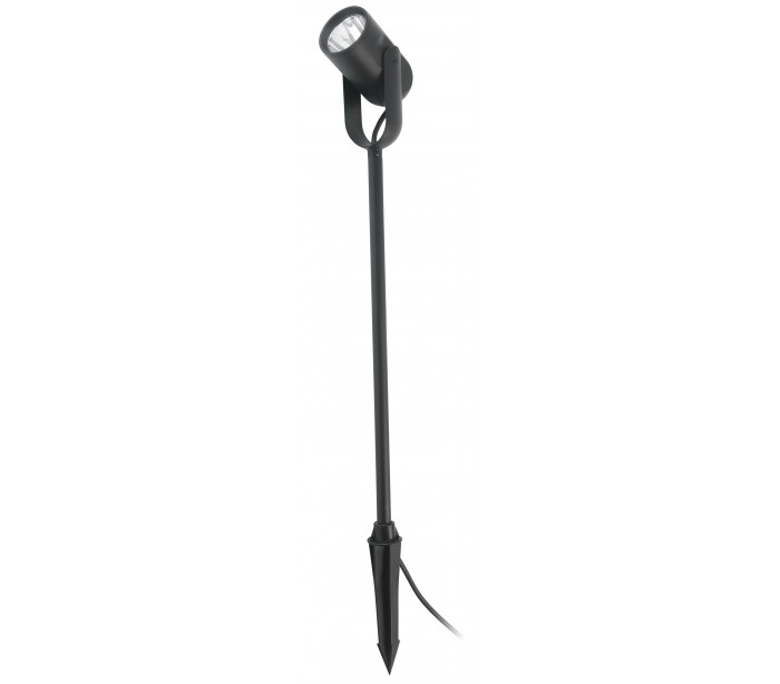 Slot bedlampe i et moderne design, fremstillet i sortlakeret aluminium. Lampen måler 50 cm over jorden og 69,2 cm med spyd og anvender 1 x COB LED lyskilde på 14W (Inkl.). Lampehovedet er vipbart.
