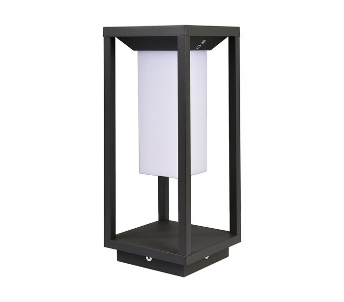 Samas solcelle havelampe i et moderne design, fremstillet i mørkegrå lakeret aluminium. Lampen måler 34 cm i højden og anvender 1 x Solar LED lyskilde på 2,2W (Inkl.). Lampen er med sensor, der regulerer belysningen ved bevægelse. For at tænde eller slukke lampen, holdes knappen nede i 3 sekunder indtil den blå indikator slukker eller tænder. Om dagen er lampen slukket, og om aftenen/natten tænder lampen med svag belysning, indtil den opdager bevægelse, hvorefter den øger belysningen. Ved optimale opsætninger, når sensoren op til 6 meter ud. Der medfølger jordspyd samt monteringsæt til fast undergrund eller betonstøbning/flise.
