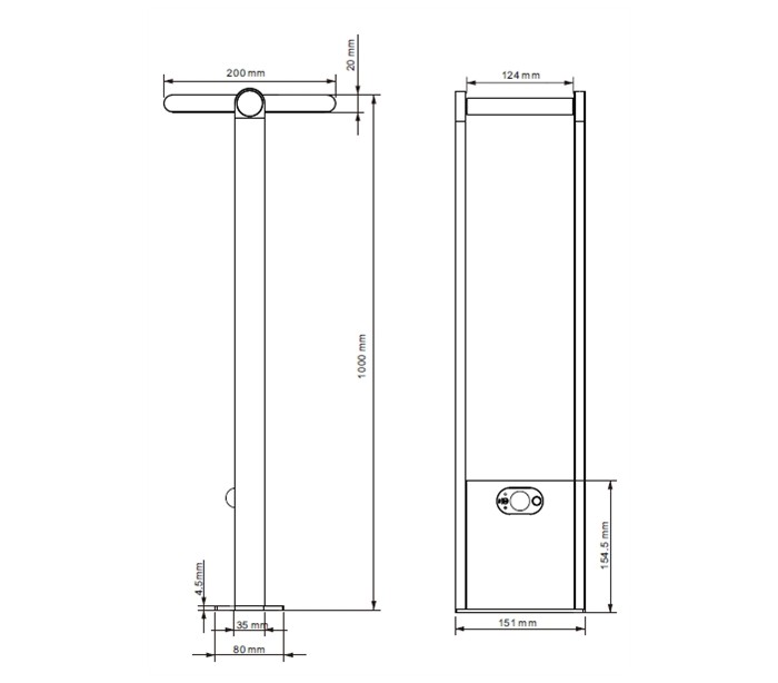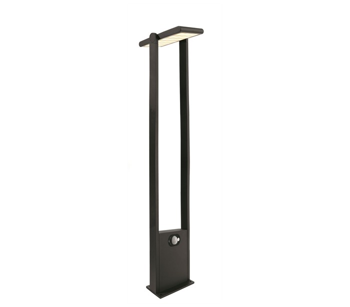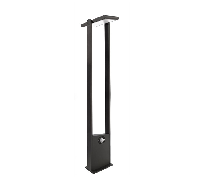 Premium solcelle havelampe i et moderne design, fremstillet i mørkegrå lakeret aluminium. Lampen måler 100 cm i højden og anvender 1 x Solar LED lyskilde på 1,6W (Inkl.). Lampen er med sensor, der regulerer belysningen ved bevægelse. Der medfølger jordspyd samt monteringsæt til fast undergrund eller betonstøbning/flise.