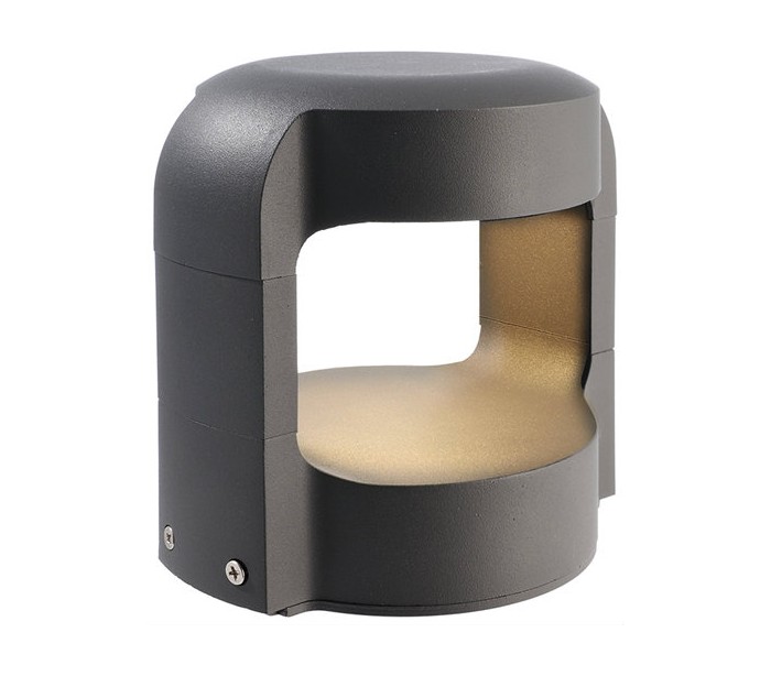 Moderne bedlampe i et design af antracitfarvet aluminimum. Lampen kommer med indbygget LED lyskilde på 12W og måler 15 cm i højden og 15,2 cm i diameter.