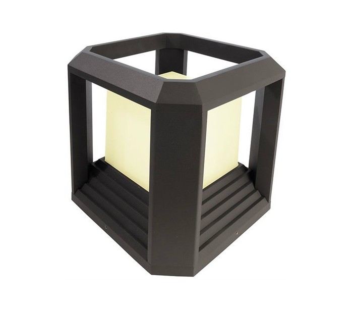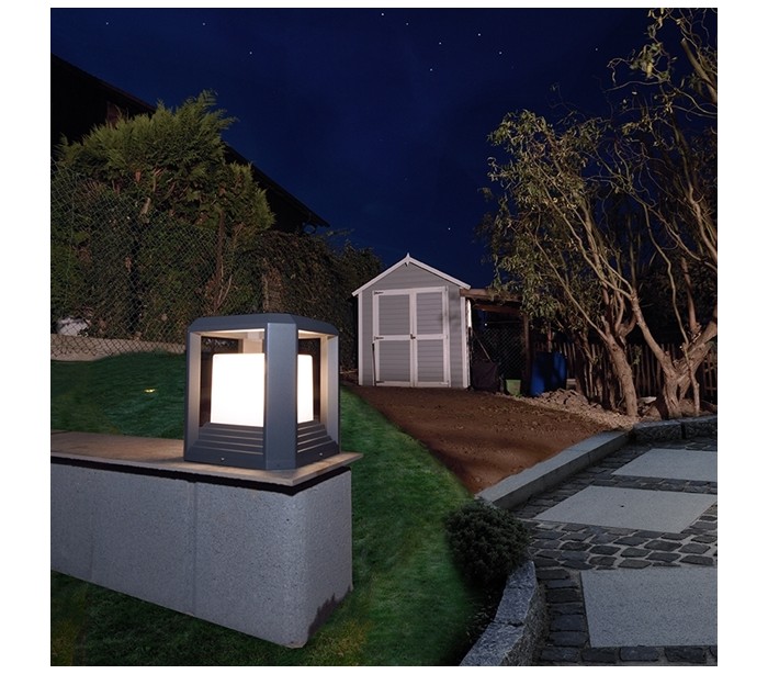 Moderne bedlampe i et design af antracitfarvet aluminimum. Lampen kommer med indbygget LED lyskilde på 20W og måler 27 cm i højden og 25 cm i bredde og dybde.