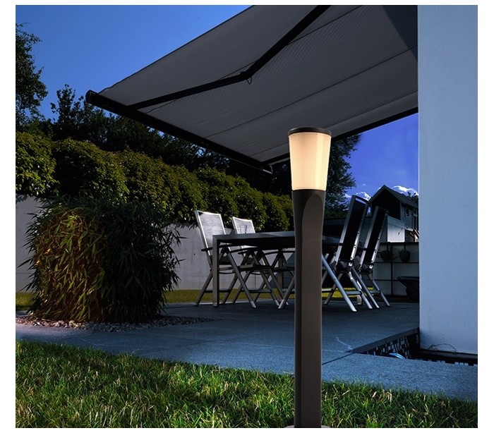 Moderne bedlampe i et design af antracitfarvet aluminimum og skærm i hvid polycarbonat. Lampen kommer med indbygget LED lyskilde på 9W og måler 50 cm i højden og 8 cm i diameter.