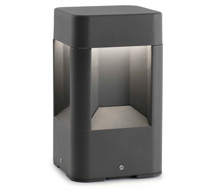 Naya havelampe i et moderne design, fremstillet i mørkegrå lakeret aluminium og polycarbonat. Lampen måler 20,5 cm i højden og anvender 1 x SMD LED lyskilde på 8W (Inkl.). Lampen bør monteres på fast undergrund eller betonstøbning/flise.