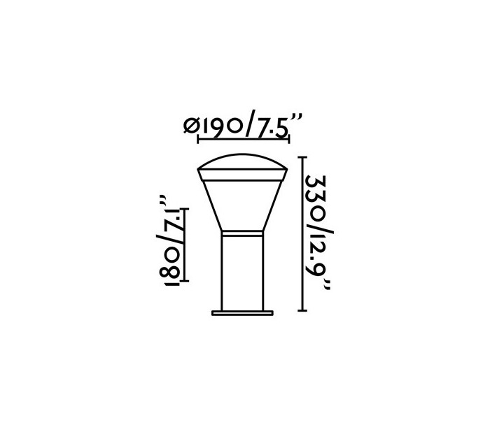 Shelby havelampe i et moderne design, fremstillet i mørkegrå lakeret aluminium. Lampen måler 33 cm i højden og anvender 1 x SMD LED lyskilde på 10W (Inkl.). Lampen bør monteres på fast undergrund eller betonstøbning/flise.