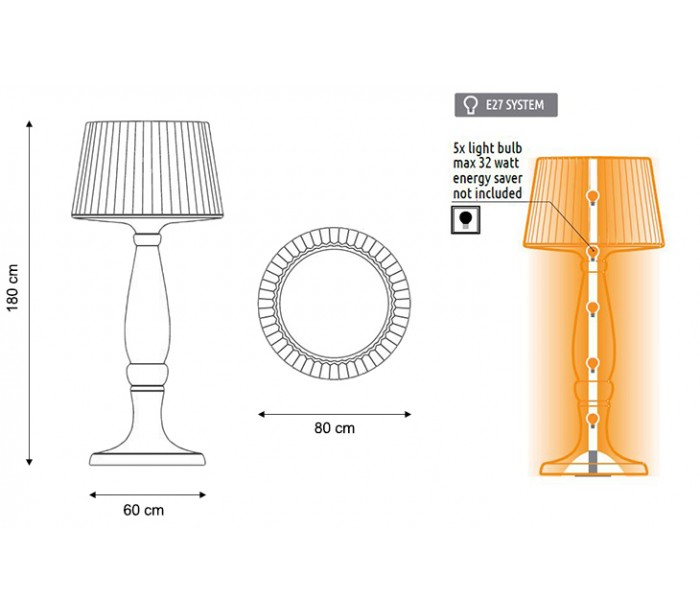• Anvender 5 x E27 lyskilder på max. 32W hver (Ekskl)