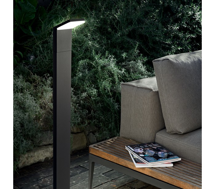 STYLE udendørs bedlampe i et moderne design fremstillet i antracitlakeret aluminium og hvid kunststof. Lampen måler 100 cm i højden og anvender 1 x 9W LED lyskilde (Inkl.). Der medfølger monteringssæt til lampen, til montering på faste underflader.