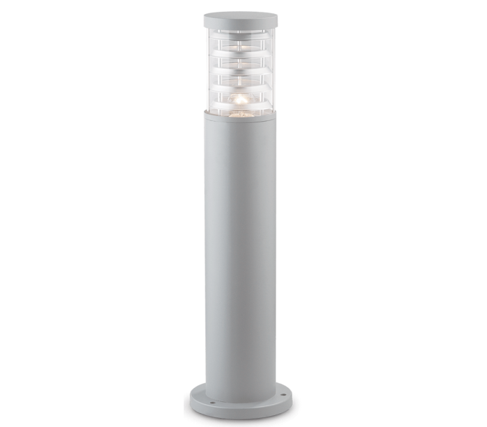 TRONCO udendørs bedlampe i et moderne design fremstillet i grålakeret aluminium og klart pyrexglas. Lampen måler 60,5 cm i højden og anvender 1 x E27 lyskilde (Ekskl.). Der medfølger monteringssæt til lampen, til montering på faste underflader.