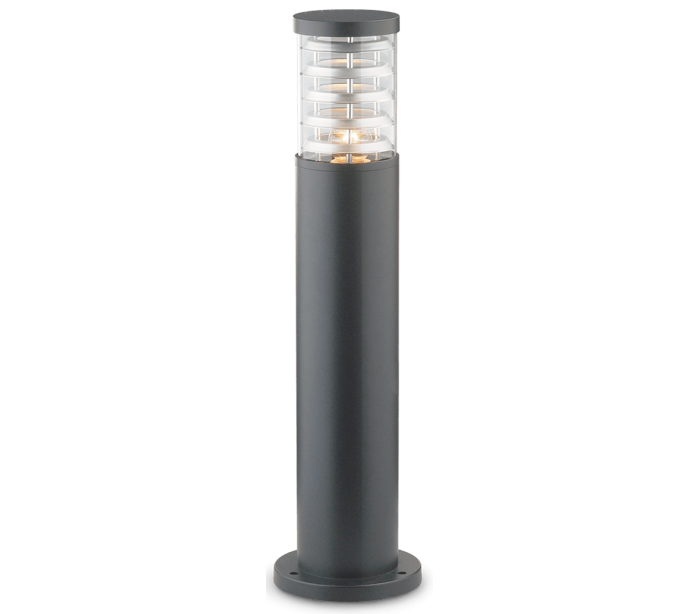 TRONCO udendørs bedlampe i et moderne design fremstillet i antracit lakeret aluminium og klart pyrexglas. Lampen måler 60,5 cm i højden og anvender 1 x E27 lyskilde (Ekskl.). Der medfølger monteringssæt til lampen, til montering på faste underflader.