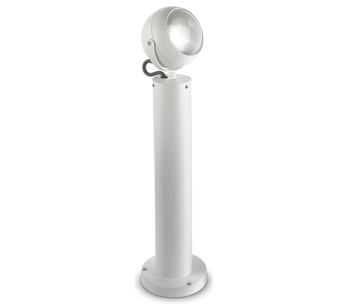 ZENITH udendørs bedlampe i et moderne design fremstillet i hvidlakeret aluminium og klar plast. Lampen måler 60 cm i højden og anvender 1 x GU10 lyskilde (Ekskl.). Lampehovedet er justerbart. Der medfølger monteringssæt til lampen, til montering på faste underflader.