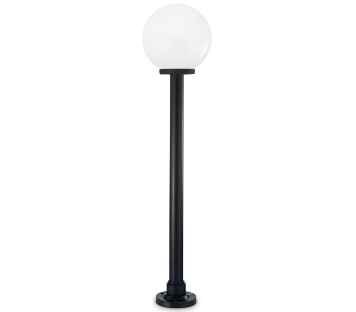 CLASSIC GLOBE udendørs bedlampe i et moderne design fremstillet i sortlakeret resin og hvid plast. Lampen måler 130 cm i højden og anvender 1 x E27 lyskilde (Ekskl.). Der medfølger monteringssæt til lampen, til montering på faste underflader.