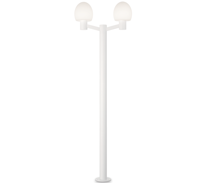 CONCERTO dobbelt udendørs bedlampe i et moderne design fremstillet i hvidlakeret aluminium og hvid plast. Lampen måler 220,5 cm i højden og anvender 2 x E27 lyskilder (Ekskl.). Der medfølger monteringssæt til lampen, til montering på faste underflader.