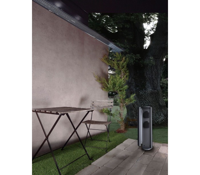 Tower strømudtag i et moderne design fremstillet i mørkegrå lakeret aluminium. Udtagsstolpen måler 40 cm i højden og kommer med 2 strømstik, således du kan slippe for forlængerledninger.