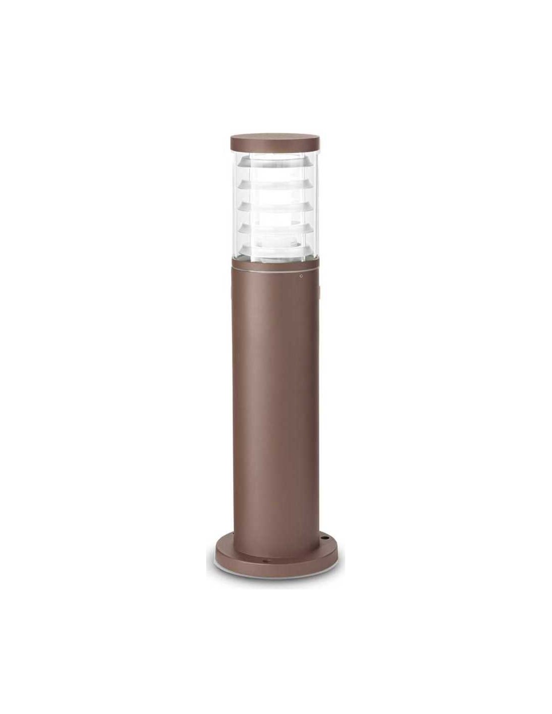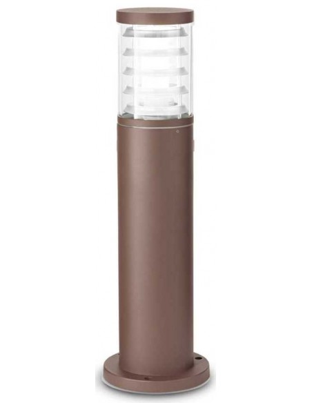 TRONCO udendørs bedlampe i et moderne design fremstillet i brunlakeret aluminium og klart pyrexglas. Lampen måler 40,5 cm i højden og anvender 1 x E27 lyskilde (Ekskl.). Der medfølger monteringssæt til lampen, til montering på faste underflader.