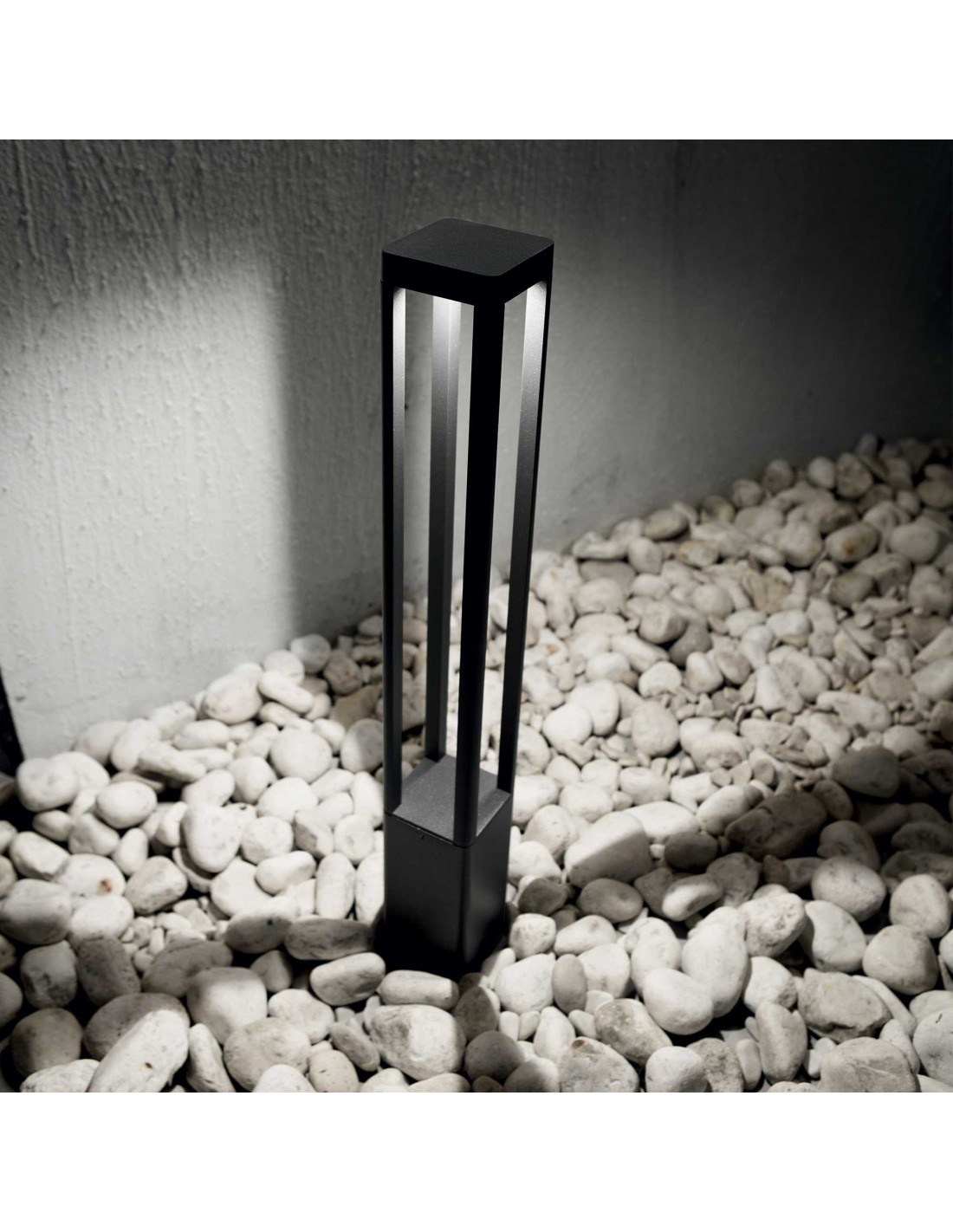 TIFONE udendørs bedlampe i et moderne design fremstillet i antracitlakeret aluminium og klar glas. Lampen måler 65,5 cm i højden og anvender 1 x 8,5W LED lyskilde (Inkl.). Der medfølger monteringssæt til lampen, til montering på faste underflader.
