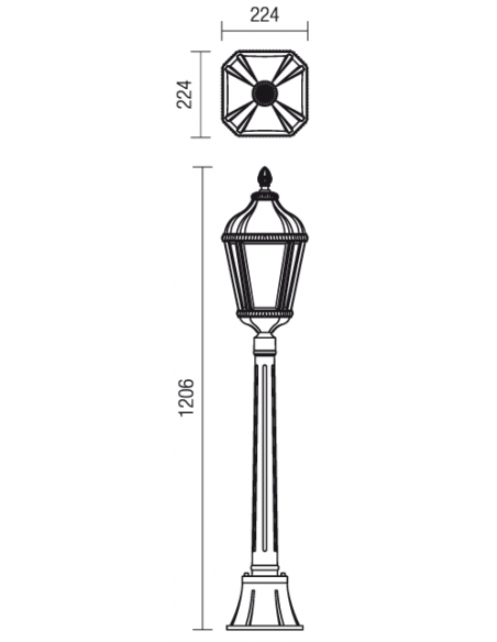 ESSEN udendørs bedlampe i et design fremstillet i aluminium og glas. Lampen måler 120,6 cm i højden og anvender 1 x E27 lyskilde (Ekskl.).