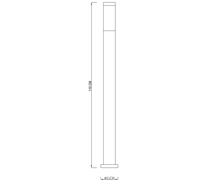 Havelampe i et moderne design til E27 lyskilder (LED kan anvendes). En havelampe der vil give indkørsel, sti eller bed en brugbar belysning. Lampen måler 110 cm i højden, og 7,5 cm i diameter.