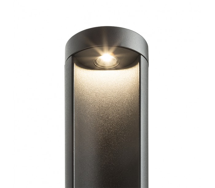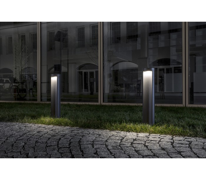 Moderne havelampe i et stilrent design, udført i antracitfarvet aluminium. Lampen har indbygget LED lyskilde på 7W, og har en højde på 45 cm, og 9 cm i diameter.