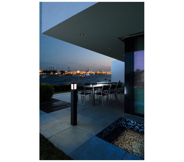 Havelampe i et moderne design til E27 lyskilder (LED lyskilder kan anvendes). En havelampe der vil give indkørsel, sti eller bed en brugbar belysning. Lampen måler 100 cm i højden, og 10,8 cm i bredde og dybde.