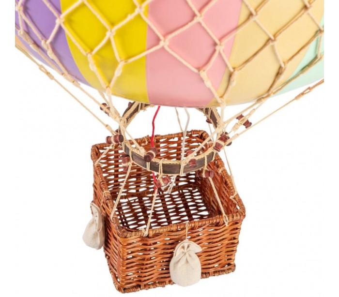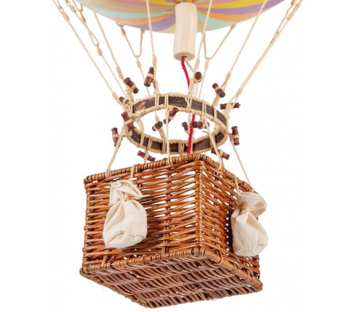 Jules Verne luftballon fra Authentic Models. Luftballon er udført i rattan og pastelfarvet polypropylene og måler 70 cm i højden og 42 cm i diameter. Ballonen er ment til ophæng i loft.
