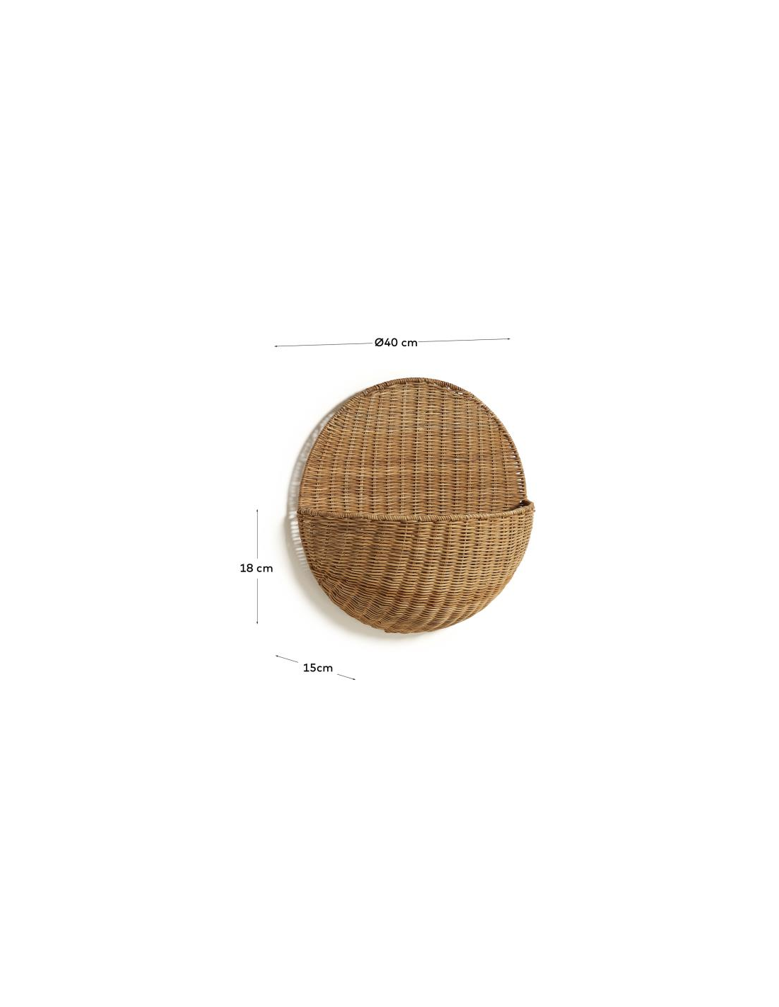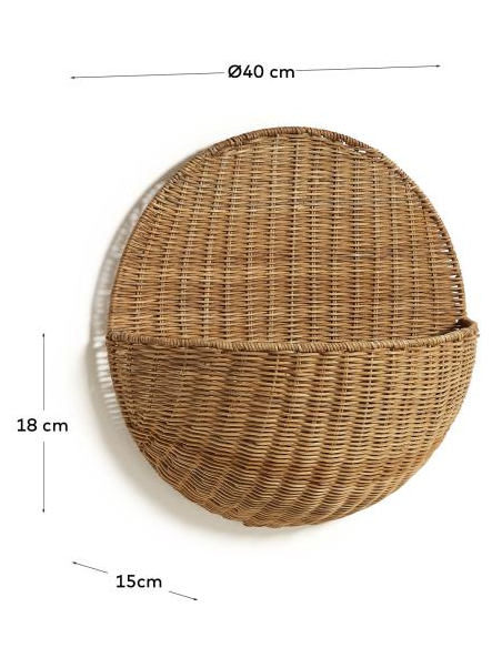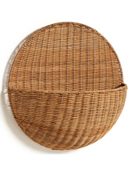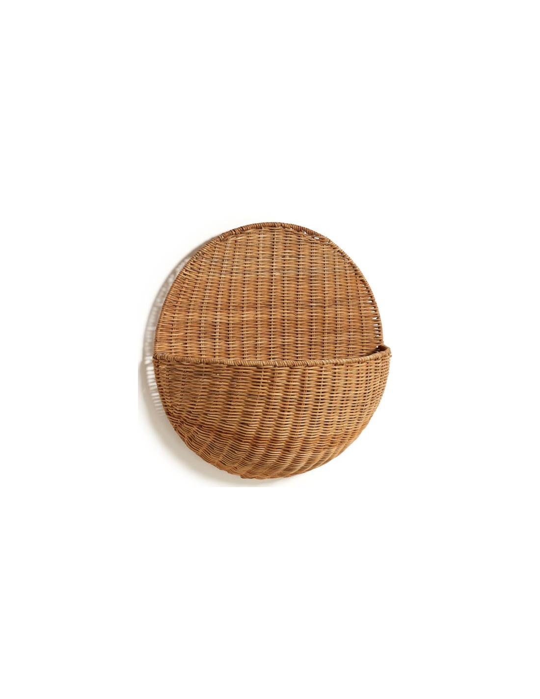 Sæt med 2 vægkurve, udført i et moderne design af brun rattan. Kurvene måler 40 cm i diameter og 15 cm i dybde/fremspring.
