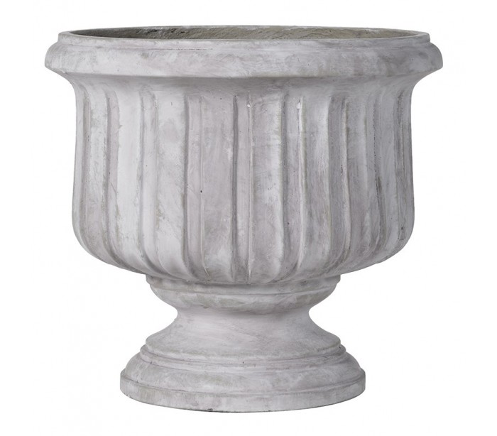 Planteopsats i et smukt og dekorativt design med udseende af antik grå. Opsatsen måler 38 cm i højden og 41 cm i diameter. Opsatsen kán anvendes udendørs også, men bør tages indendørs når der ikke er tørvejr.