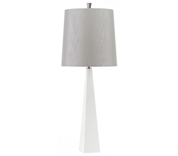 Ascent bordlampe fra britiske Elstead. Lampen måler 79 cm i højden og leveres til europæisk standard til 1 x E27 lyskilde. Lampen er udført i et design af hvidlakeret stål og med skærm i grå tekstil.