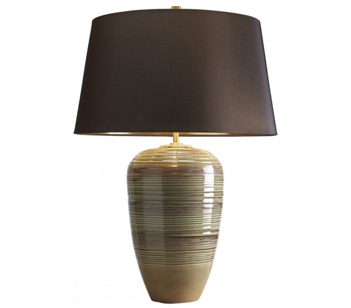 Dementer bordlampe fra britiske Elstead. Lampen måler 63 cm i højden og leveres til europæisk standard til 1 x E27 lyskilde. Lampen er udført i et design af malet keramik og med skærm i brun tekstil.