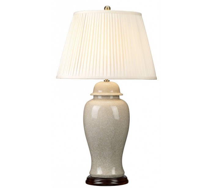 Ivory Crackle bordlampe fra britiske Elstead. Lampen måler 81 cm i højden og leveres til europæisk standard til 1 x E27 lyskilde. Lampen er udført i et design af malet porcelæn samt med skærm i cremefarvet tekstil.