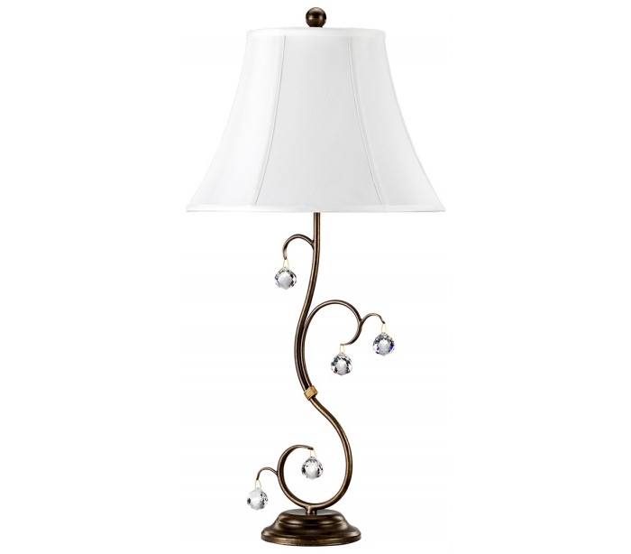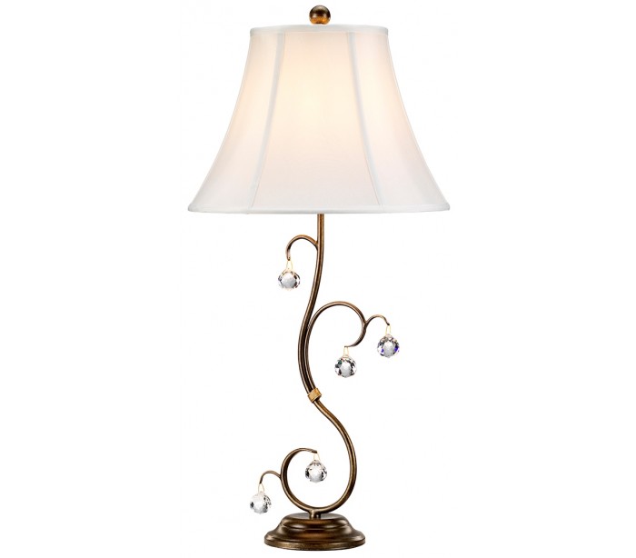 Lunetta bordlampe fra britiske Elstead. Lampen måler 69 cm i højden og leveres til europæisk standard til 1 x E27 lyskilde. Lampen er udført i et design af patineret bronzelakerer metal og med skærm i cremefarvet tekstil.