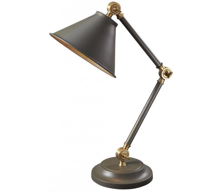 Provence bordlampe fra britiske Elstead. Lampen måler op til 52,3 cm i højden og leveres til europæisk standard til 1 x E27 lyskilde. Lampen er udført i et design af antik mørkegrå og antik messinglakeret stål og er indstillelig i højde og fremspring.