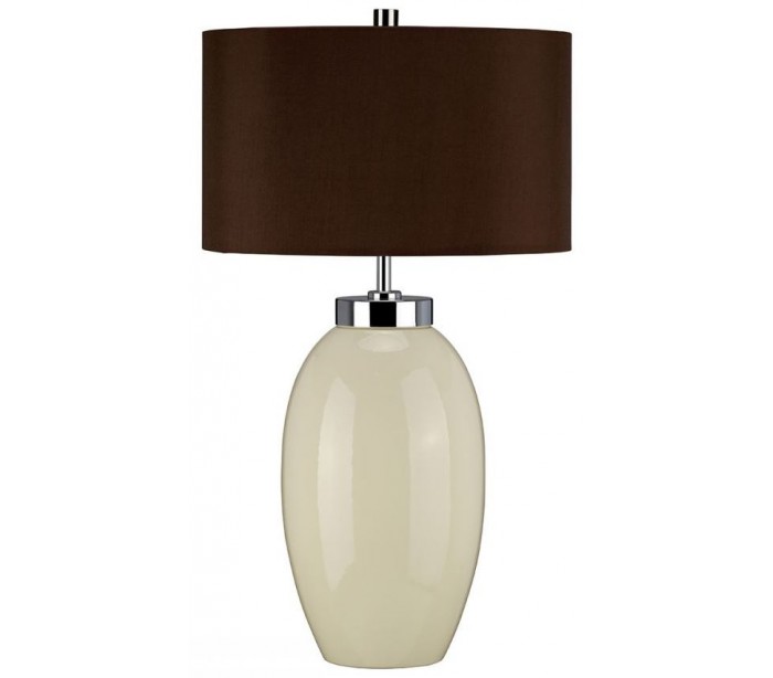 Victor bordlampe fra britiske Elstead. Lampen måler 58 cm i højden og leveres til europæisk standard til 1 x E27 lyskilde. Lampen er udført i et design af malet porcelæn samt med skærm i mørkebrun tekstil.