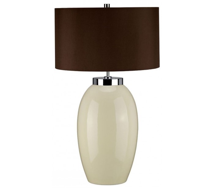 Victor bordlampe fra britiske Elstead. Lampen måler 70 cm i højden og leveres til europæisk standard til 1 x E27 lyskilde. Lampen er udført i et design af malet porcelæn samt med skærm i mørkebrun tekstil.