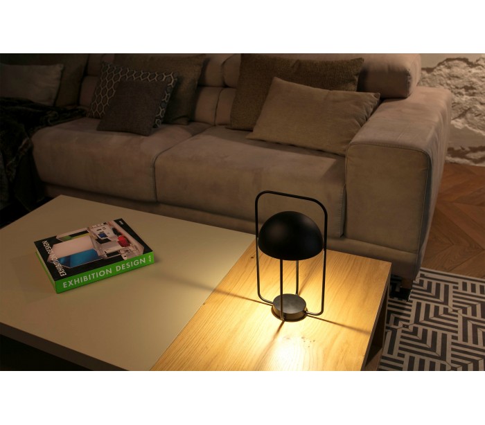 Bordlampe i et moderne design, fremstillet i sortlakeret metal. Lampen måler 31 cm i højden og anvender 1 x LED lyskilde på 1 - 3,2W (Inkl.). Lampen oplades via medfølgende stik, og kan efterfølgende lyse i op til 9 timer, uden ledning. Lampen er dæmpbar: 3,2W 300 Lm / 2W 200 Lm / 1W 100 Lm.