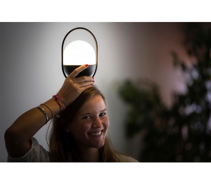 Bordlampe i et moderne design, fremstillet i sort polycarbonat og træ i naturfarve. Lampen måler 20 cm i højden og anvender 1 x LED lyskilde på 1 - 3W (Inkl.). Lampen oplades via medfølgende stik, og kan efterfølgende lyse i op til 15 timer, uden ledning. Lampen er dæmpbar: 1W = 15 timer, 2W = 10 timer, 3W = 5 timer.