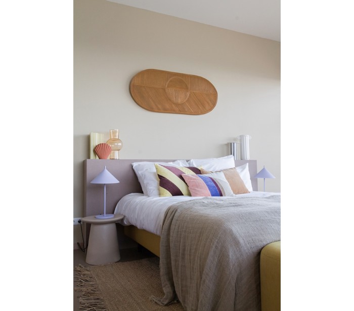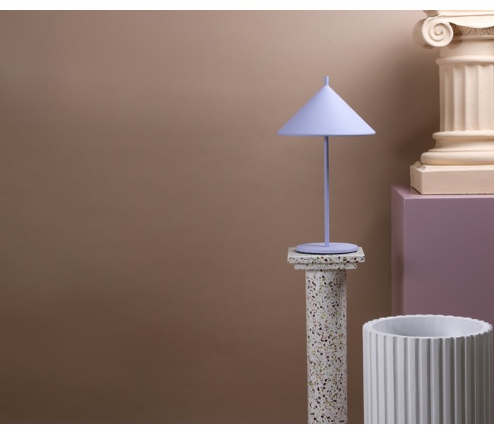 Bordlampe i et stilrent design, fremstillet i lilla lakeret metal. Lampen måler 25 cm i diameter (skærm) og 48 cm i højden og anvender 1 x E14 lyskilde (Ekskl.). Ledningen måler 150 cm og med afbryder.