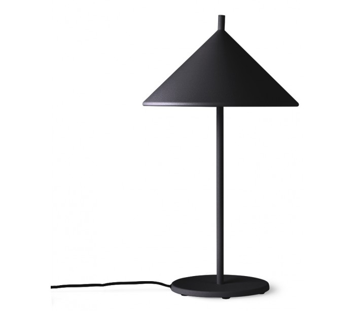 Bordlampe i et stilrent design, fremstillet i mat sortlakeret metal. Lampen måler 25 cm i diameter (skærm) og 48 cm i højden og anvender 1 x E14 lyskilde (Ekskl.). Ledningen måler 150 cm og med afbryder.