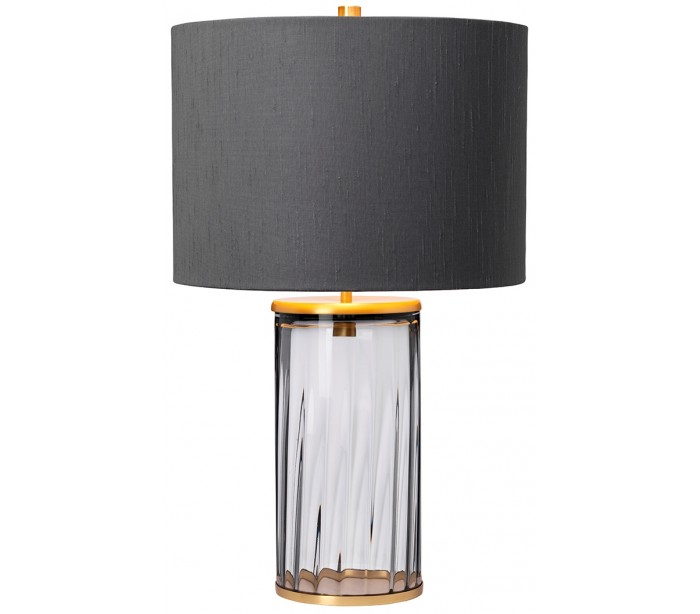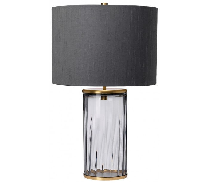 Reno Bordlampe i glas og tekstil H60 cm 1 x E27 - Røget/Aldret messing/Grå