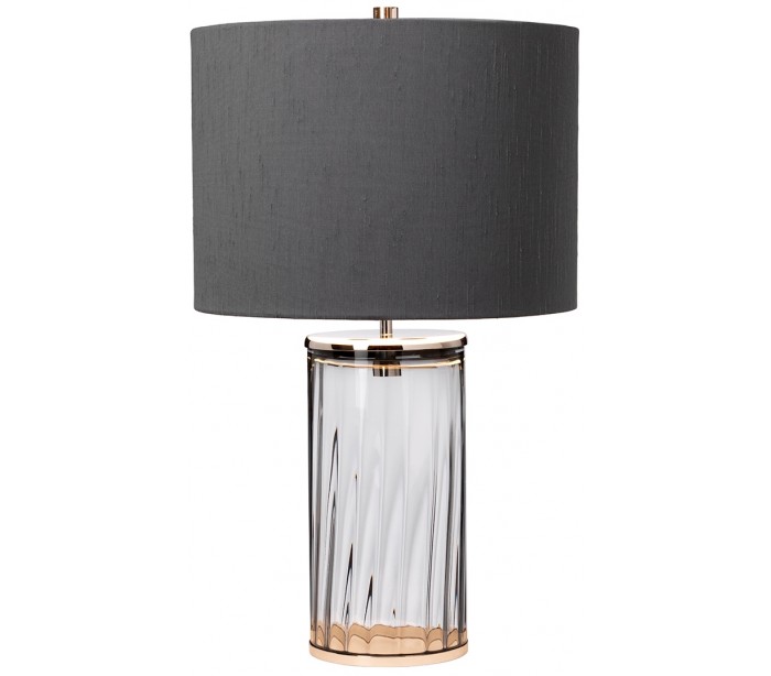Reno Bordlampe i glas og tekstil H60 cm 1 x E27 - Røget/Poleret nikkel/Grå