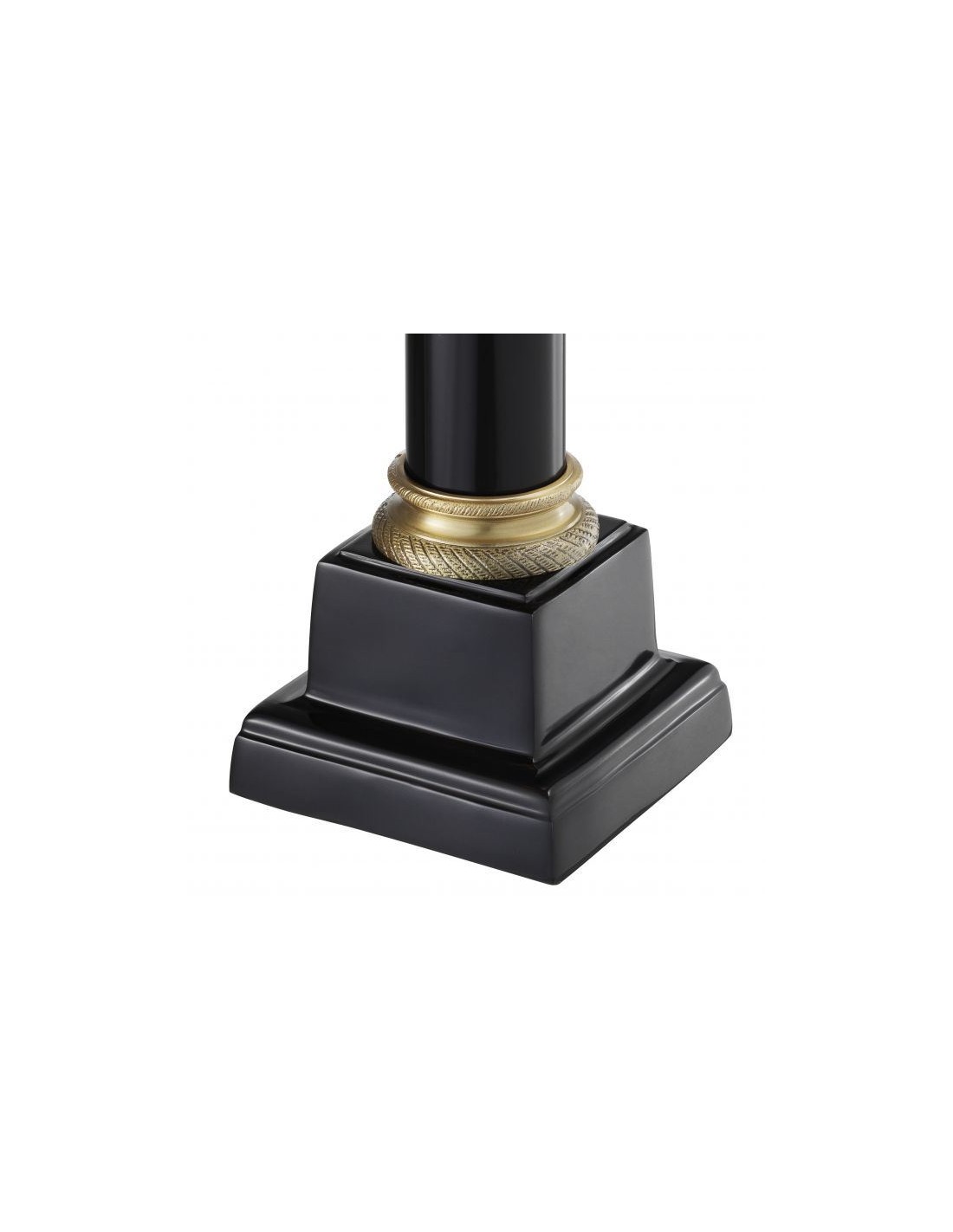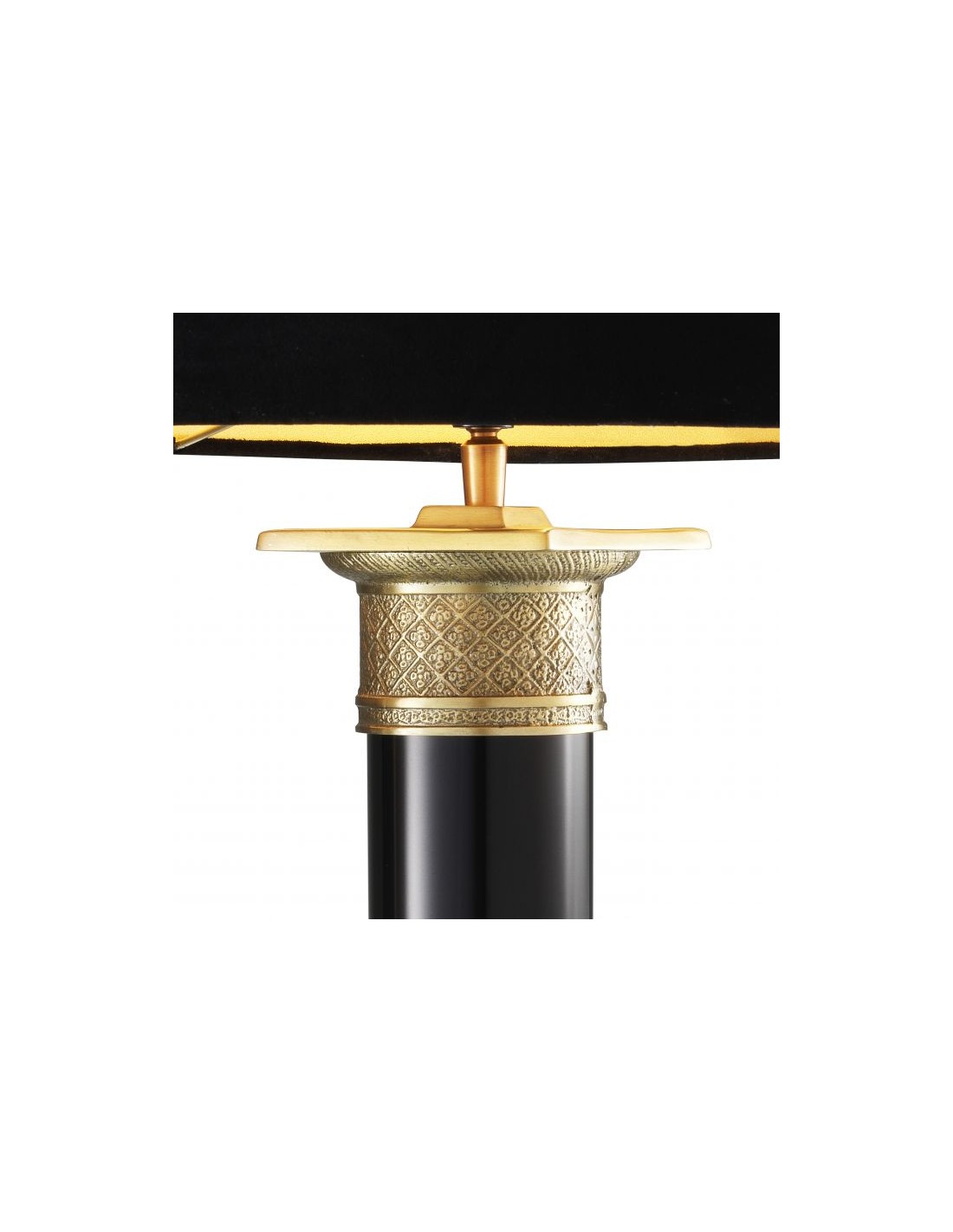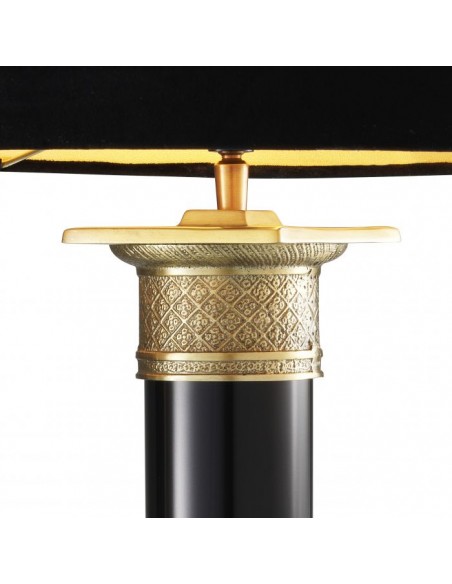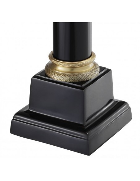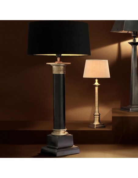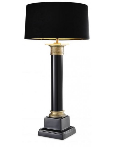 Eichholtz Monaco bordlampe udført i et design af antik messing- og sortlakeret aluminium og med skærm i sort velour. Bordlampen måler 83 cm i højden og 40 cm i diameter og anvender 1 x E27 lyskilde.