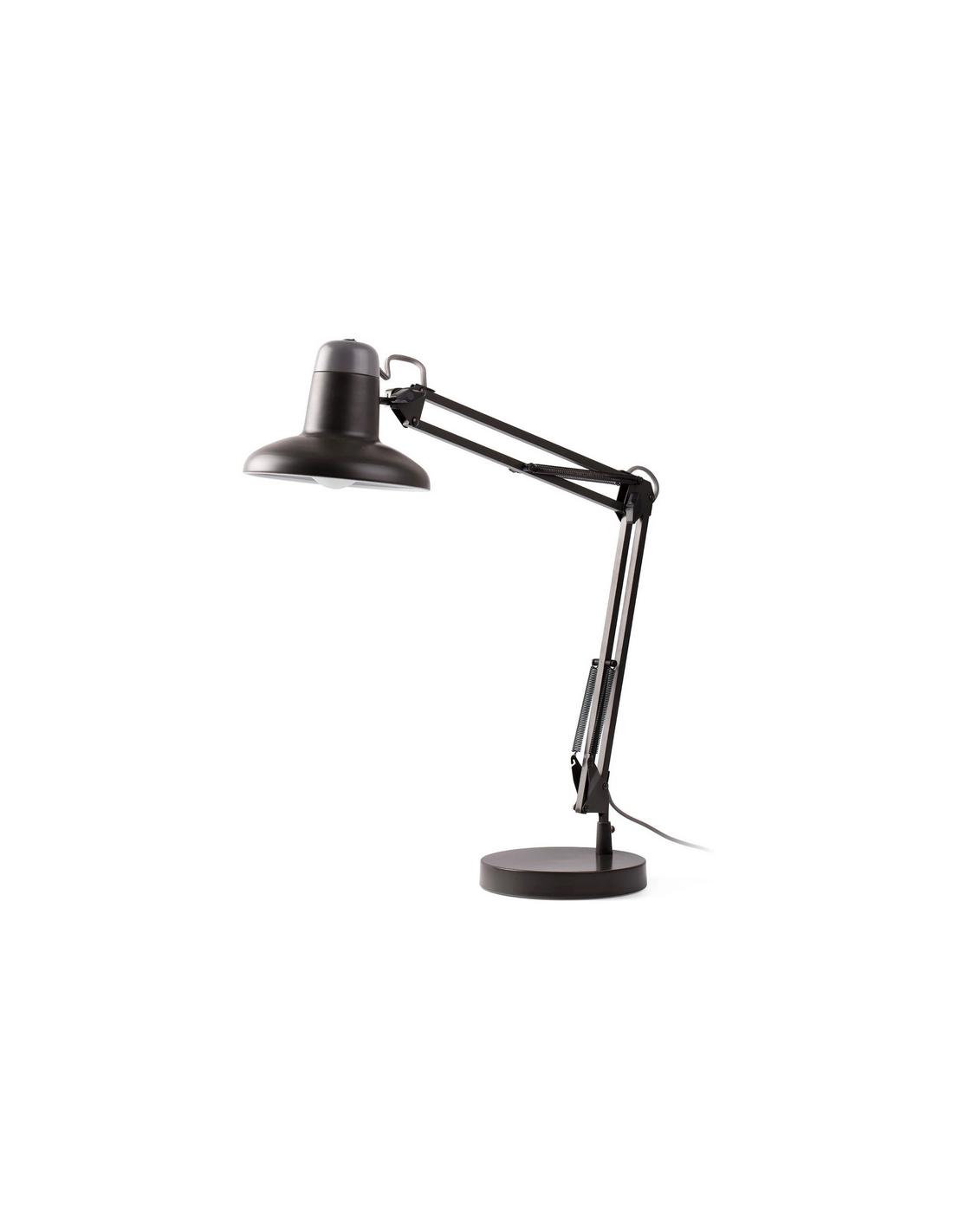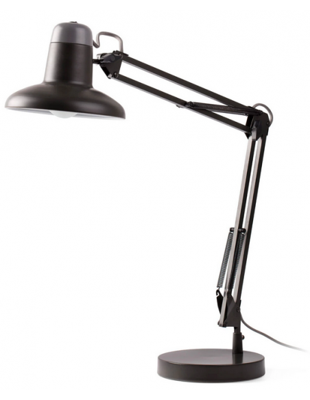 Skrivebordslampe udført i et moderne design, fremstillet i mørkegrålakeret metal. Lampen måler op til 57 cm i højden og anvender 1 x 15W LED lyskilde (Inkl.). Lampen har 180 cm ledning.