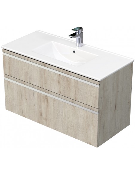 BRAVE Komplet badmiljø med håndvask B101 cm Keramik og MDF - Lys eg
