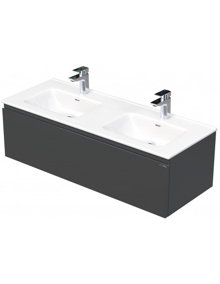 LETTY Komplet badmiljø med dobbelt håndvask B121 cm Keramik og MDF - Antracit højglans