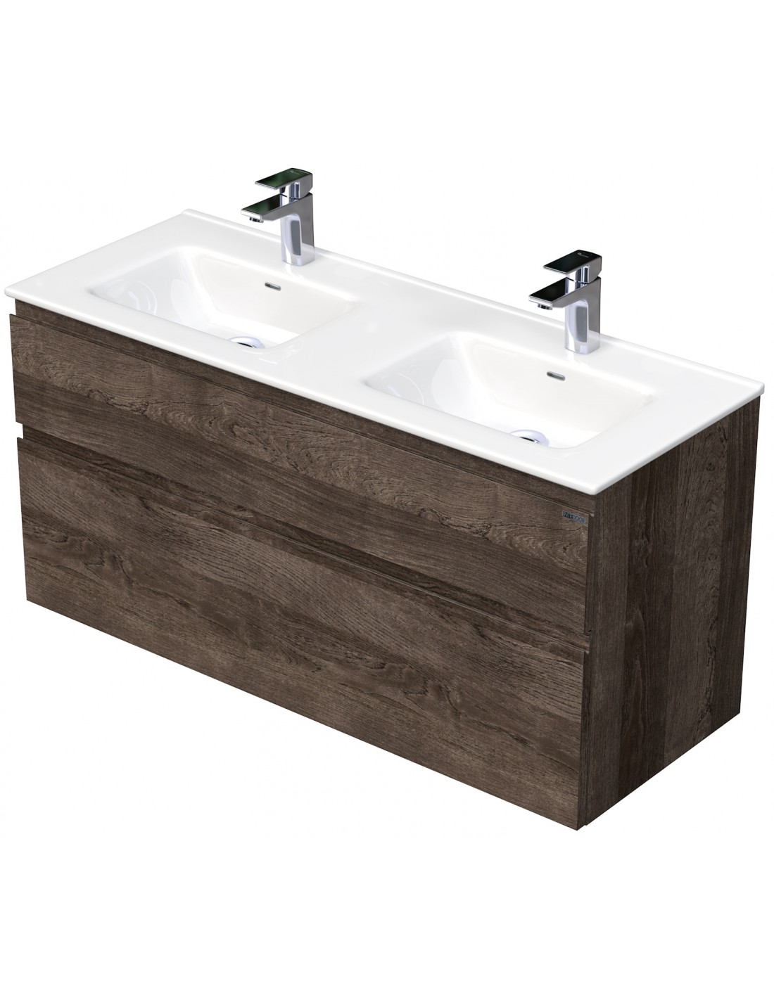 LETTY Komplet badmiljø med dobbelt håndvask B121 cm Keramik og MDF - Mørk eg