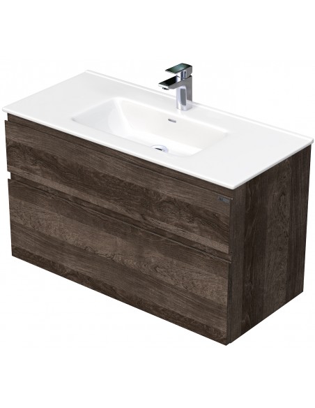 LETTY Komplet badmiljø med håndvask B101 cm Keramik og MDF - Mørk eg
